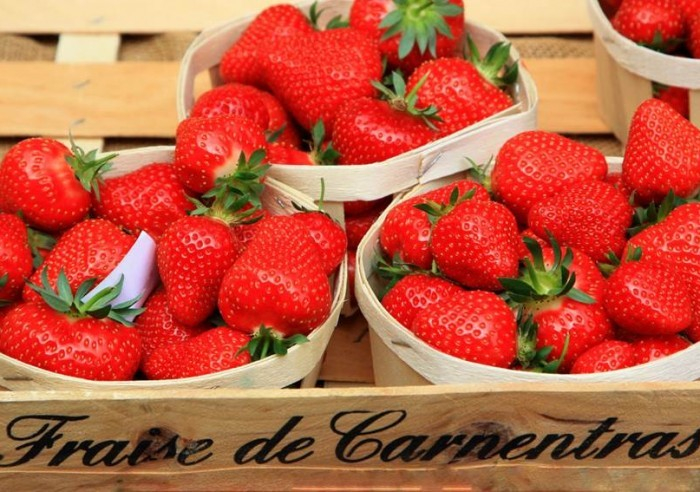 Espace vente et dégustation avec les producteurs de fraises de Carpentras.